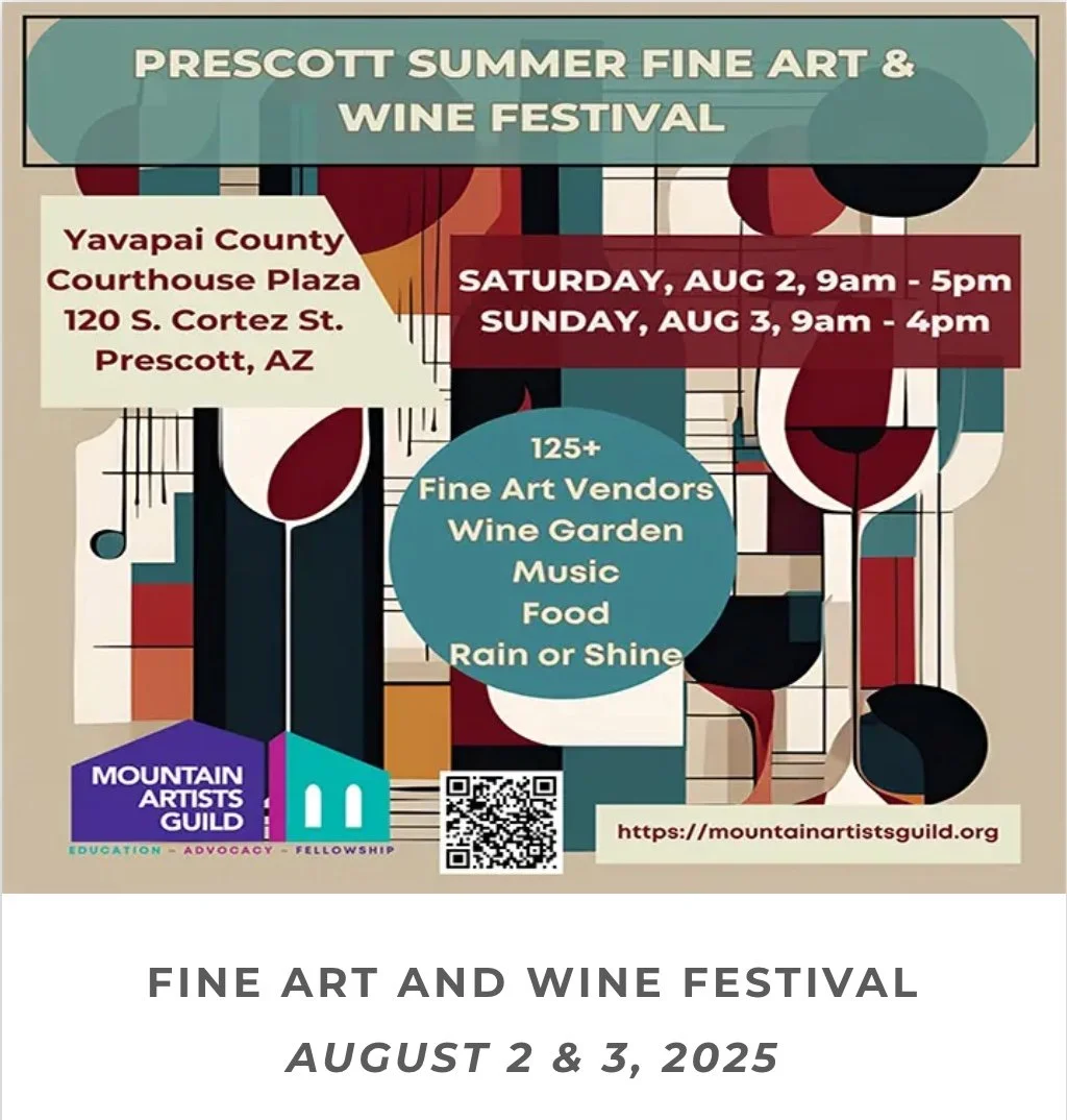 Celebrate this weekend with a perfect blend of fine art, local wine, and mouthwatering Thunder Ranch BBQ! The Prescott Summer Fine Art & Wine Festival is an outdoor event on the historic Courthouse Plaza in Downtown Prescott. Showcasing a juried exhibition of outstanding fine art and food vendors.